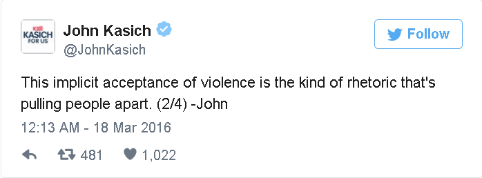 In a series of tweets signed “John,” Kasich chided the GOP presidential front-runner for using “unacceptable language.”