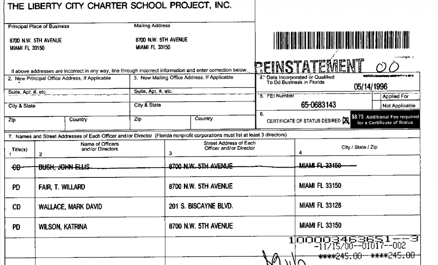 Recovering from an ego-bruising election loss, Bush was looking for chances to soften his image as a callous Republican who proclaimed he would do “probably nothing” as governor to help African Americans. As a private citizen likely to run for governor again in 1998, Bush created the Liberty City Charter School as a way to educate black children from Miami’s poorest neighborhoods. The school would give him a way to mend ties with the black community while testing a controversial, conservative education theory that was drawing the ire of teachers unions.