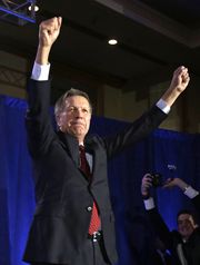 For Kasich, the journey to presidential candidacy is rooted in his re-election. Touting income-tax cuts and economic growth, he rolled over scandal-ruined Democrat Ed FitzGerald, 64% to 33%. Kasich won 86 of Ohio's 88 counties – even the one containing Democratic stronghold Cleveland.