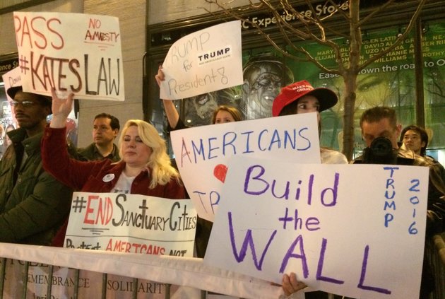 About a dozen pro-Trump counter-protesters also showed up Saturday night and stood across the street from the action. Most of them refused to be interviewed, and one man even refused to have his photo taken; he said he's currently involved in a court case and did not want to show up in a news article and have it affect the outcome of the case.
