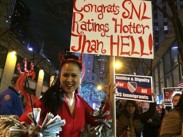"Allowing Trump to host 'Saturday Night Live,' a storied comedy show, is nothing short of a slap in the face to the more than 57 million Latinos living in the U.S., whose only wish is to work hard, provide for their families and live the American dream," said Brent Wilkes, the national executive director of the League of United Latin American Citizens, which organized the protest.