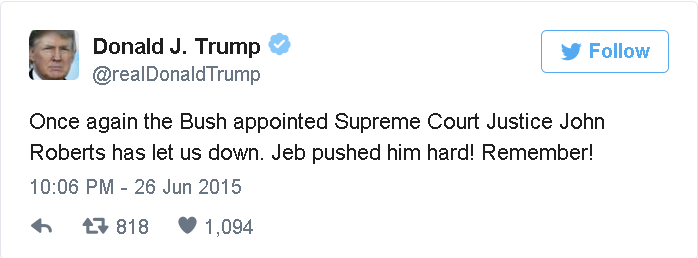 All of the above is consistent with Trump's tweet in response to the Obergefell ruling last June:
