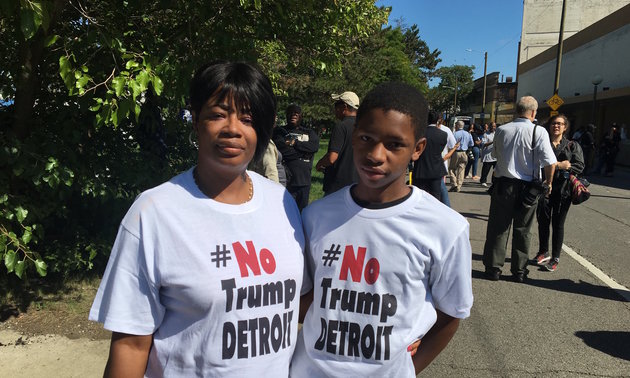Laketa Dumas, who lives in a suburb and works in a public school in Detroit, brought her 14-year-old son out to protest Trump on Saturday.