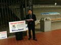 • 【上图】SVCA义工清晨在北加捷运车站散发传单,助选Catherine Baker。他们照这些照片时,我们都还在梦乡中