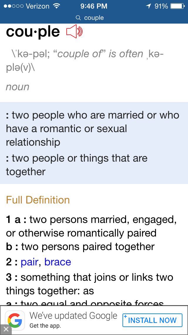 • @zhongdan lan Come on! "Couple" can be just two people, doesn't have to be one man and one woman. Don't believe me? Look up Webster.