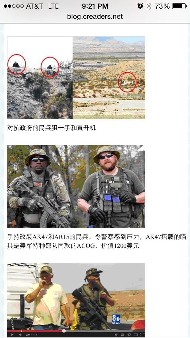 • 那个人在联邦土地上畜牧,长期拒绝交费。警察去强制执行,导致冲突。牛仔理屈。后来暴露了他的种族主义言论,连fox news 都抛弃他了。
