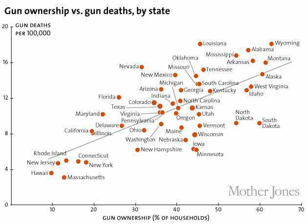 • 你要拿路易斯安娜和明尼苏达比一下,那就是拥枪率和因枪死亡率不相关