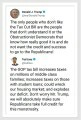 Senator Bennett (CO-D) got it right: "When I came to Washington nine years ago, I would have never believed that something this cynical could happen on the floor of the U.S. Senate. The Senate passed a tax bill that has been sold to the American people with falsehood after falsehood. Republicans claim this is for the middle class. It is not. In its first and best year, those with incomes over $1 million receive an average tax cut of $59,000 under this plan, while those who earn less than $50,000 receive just $160. It gets worse from there. Republicans claim this plan pays for itself, just like they claimed when they cut taxes in 2001 and 2003. It won’t. Instead, this plan borrows over $1 trillion from our kids and grandkids. It is the sons and daughters of Colorado’s teachers, firefighters, and police officers who will have to pay back that bill. And for what? To end poverty in America? No. To invest in infrastructure or health care? No. To strengthen our safety net? No. But to fritter it away on tax cuts for the wealthiest people in America. All of us have a job to do: leave more opportunity, not less, to those who’ll come after us. The Senate has shamefully abdicated that responsibility."